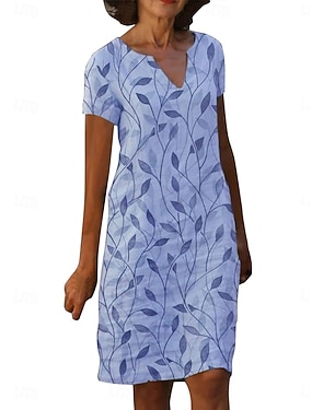 Damen Minikleid Casual kleid Sweatkleid Boho-Kleid Stilvoll Brautkleider schlicht Urlaub Täglich Regular Fit Blumen Blatt Kurzarm Rundhalsausschnitt Blau Braun Grün Sommer
