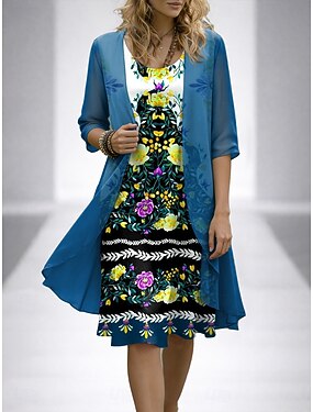 Damen Kleid-Set A Linie Kleid Elegant Urlaub Blumen Grafik Geschichtet Druck Minikleid Halbarm Rundhalsausschnitt Täglich Blau Rote Purpur Sommer Frühling Normale Passform