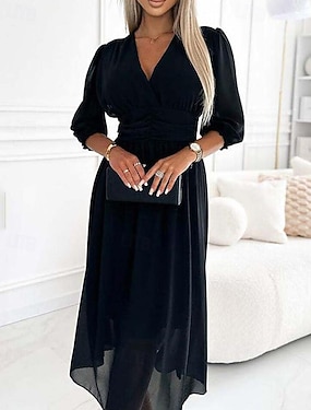 Damen Midikleid schwarzes kleid Freizeitkleid Elegant Mode Modern Täglich Ausgehen Wochenende Normale Passform Einfach Dreiviertelarm V Ausschnitt Blau Schwarz Grün Frühling Herbst