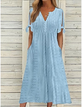 Damen Midikleid A Linie Kleid Lässig Outdoor Strand Ausgehen Lässiger Schnitt Einfarbig Dreiviertelarm V Ausschnitt Blau Schwarz Gelb Rosa Sommer Frühling product tag