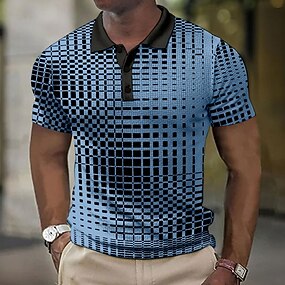 Herren Karomuster Poloshirts Golf Poloshirts Kurzarm Polo-Shirts Kragen Vintage Lässig Urlaub Party-Abendmode Alltagskleidung Knöpfe 3D-Druck Sommer Blau