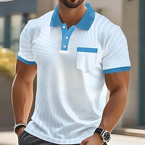 Herren Geometrisch Linie Polo Langarm Polo-Shirts Hemden mit Kragen Business-Casual Geschäft Athleisure Alltagskleidung Tasche 3D-Druck Knöpfe Frühling Herbst Winter Blau Schwarz Himmelblau
