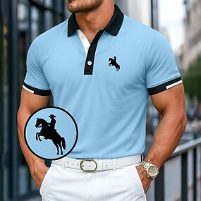 Herren Geometrisch Linie Poloshirts Kurzarm Polo-Shirts Hemden mit Kragen Lässig Athleisure Knöpfe Sommer Frühling Blau Schwarz Weiß