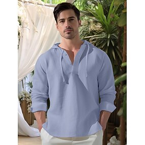 Herren Hemd leinenhemd Sommerhemd Strandbekleidung Glatt Urlaub Curise Weiß Blau Braun Grün Langarm Mit Kapuze Frühling Sommer Bekleidung