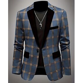 Herren Blazer Geschäft Cocktailparty Hochzeitsfeier Mode Lässig Frühling Herbst Polyester Karomuster Tasche Knöpfe Bequem Einreihig Blazer Schwarz Blau Braun