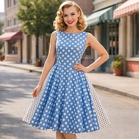 Klassisch 1950er Cocktailkleid Kleid Swing-Kleid Ärmellos Dame Tupfen A-Linie Kostüm Damen Karneval Maskerade Abschlussball Büro / Karriere Veranstaltung / Fest Erwachsene Kleid Frühling & Sommer
