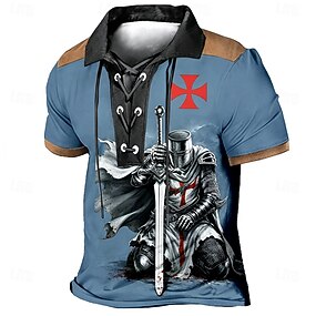 Herren Tempelritter Poloshirts Kurzarm Polo-Shirts Revers Vintage Lässig Streetwear Alltagskleidung 3D-Druck Atmungsaktives Gewebe Frühling & Sommer Blau Schwarz Braun