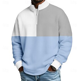 Herren Farbblock Poloshirts mit Reißverschluss Langarm Polo-Shirts Großvaterkragen Lässig Schule Athleisure Ferien Alltagskleidung 3D-Druck Viertelreißverschluss-Poloshirt Herbst Winter Frühling Blau