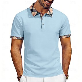Herren Poloshirts Lässig Geschäft Revers Kurzarm Basic Modern Karomuster Leicht Knöpfe Sommer Frühling Normale Passform Blau Schwarz Weiß Rote Marineblau Aprikose Poloshirts