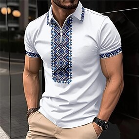 Herren Geometrisch Golfshirt Kurzarm Polo-Shirts Hemden mit Kragen Lässig Urlaubskleidung Formelle Kleidung Festivalkleidung Knöpfe 3D-Druck Frühling & Sommer Weiß Blau
