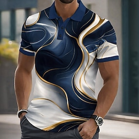 Herren Grafik Poloshirts Golfshirt Kurzarm Polo-Shirts Hemden mit Kragen Lässig Urlaubskleidung Rave-Kleidung Party-Outfits Knöpfe 3D-Druck Sommer Frühling Blau