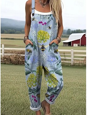 Damen Normal Overall Aktiv Blumen Ärmellos Weites Bein V Ausschnitt Tasche Druck Täglich Urlaub Lässiger Schnitt Blau Rosa Armeegrün Sommer