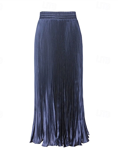 Damen Satinröcke Mode Lässig Maxi Hohe Taille Röcke Einfach Plissiert Mikroelastisch Alltagstauglich Wochenende Blau Pfauenblau Violett Dunkelgrün Sommer Polyester