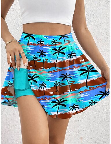 Damen Urlaubsrock Tennissrock Elegant Mode Hawaiianisch Strandbekleidung Über dem Knie Hohe Taille Röcke Grafik Farbblock Farbverlauf Druck Dehnbar Täglich Strand Blau Amethyst Orange Sommer 95