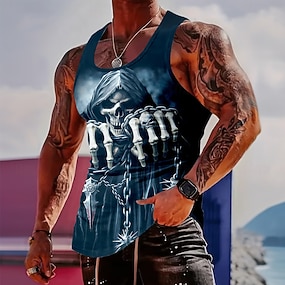 Herren Grafik Schädel Skelett Weste Ärmelloses T-Shirt für Herren Ärmellos Kappenärmel T-Shirt 3D-Druck Rundhalsausschnitt Hemd Mode Designer Muskel Täglich Sport Fitnessstudio Schwarz Blau Dunkelblau