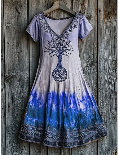 Damen Maxi Kleid A-Linien Kleid Freizeitkleid Strandkleid A-Linien Kleid Sommerkleid Bohemia Urlaub Vintage täglich reguläre Passform Ombre Grafik Geometrisch Kurzarm V-Ausschnitt Blau Lila Grün