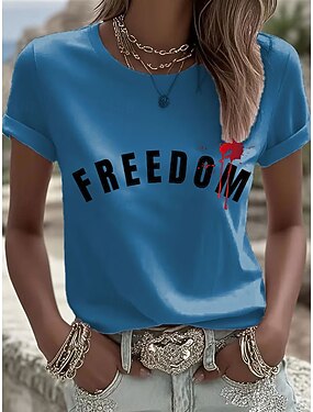 Damen T Shirt Druck Grafik Buchstabe Vintage Stilvoll Klassisch Kurzarm Rundhalsausschnitt Normale Oberteile Täglich Blau Schwarz Weiß Grün Grau Sommer Frühling