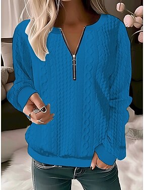 Damen Bluse Reißverschluss Einfarbig Stilvoll Lässig Langarm Rundhalsausschnitt Normale Oberteile Täglich Blau Schwarz Rosa Rote Purpur Frühling Herbst Winter