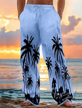 Herren Leinenhosen Hose Sommerhose Baggy-Hosen Strandhose Kordelzug Elastischer Bund Gerader Schnitt Kokospalme Komfort Atmungsaktiv Volle Länge Lässig Täglich Ferien Urlaub Mode Schwarz Weiß