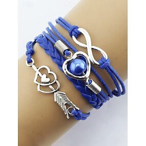 Damenarmbänder im Boho-Stil aus Legierung und Kunstleder, mehrfarbig mit Herz- und Unendlichkeitssymbolen – perfekt für Valentinstag und Freizeitkleidung