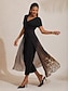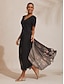 Schwarzer Damen-Jumpsuit aus Tencel-Chiffon mit Farbverlauf, zweiteilig, fließend, transparent, Stretch, Blumenmuster, V-Ausschnitt, ideal für Partys, Urlaub, Frühling und Sommer