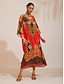 Damen Knielanges Kleid A Linie Kleid Urlaub Lässig Boho Strand Normale Passform Grafik Paisley-Muster Boho Paisley Damast Kurzarm V Ausschnitt Rote Sommer Frühling
