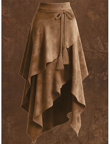 Damen Vintage Mode Lässig Asymmetrisch Mittlere Hüfthöhe Röcke Einfach Gerafft Quastenfransen Unelastisch Täglich Urlaub Braun Sommer Polyester