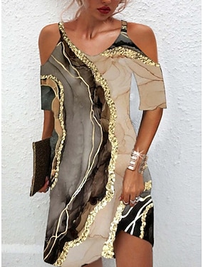 Damen Minikleid Vintage-Kleid Freizeitkleid Elegant Vintage Mode Outdoor Urlaub Ausgehen Normale Passform Grafik Kurzarm V Ausschnitt Blau Braun Sommer Frühling