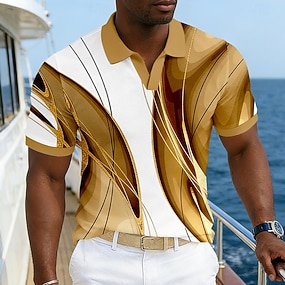 Herren Geometrisch Linie Polo Kurzarm Polo-Shirts Hemden mit Kragen Business-Casual Outdoor Athleisure Alltagskleidung Tasche 3D-Druck Knöpfe Sommer Blau Schwarz und Weiß Schwarz