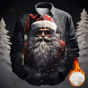 Weihnachtshemden für Herren mit Weihnachtsmann-Aufdruck, lässiger Fleece-Langarmpullover für den Alltag, Urlaub, Ausgehen, Herbst&winter turndown print button-down fleece blau khaki fleece