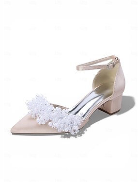 Elfenbeinfarbene, perlenbesetzte Riemchenpumps für Damen, elegante Brautschuhe mit spitzer Zehenpartie für eine moderne Stadthochzeit