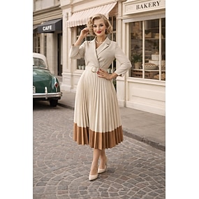 Elegant 1950er Retro Vintage Midlänge Kleid Taillengürtel A-Linien-Kleid Plissiert A-Linie Kostüm Damen Teegesellschaft Retro-Mottoparty Erwachsene Kleid Gürtel Frühling & Sommer