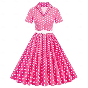 Retro Vintage 1950er Rockabilly Knielang Swing-Kleid Ausgestelltes Kleid Hemdkleid Mit Gürtel Tupfen Kostüm Damen Karneval Maskerade Urlaub Party / Abend Alltagskleidung Erwachsene Kleid Frühling
