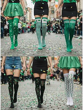 Grüne Kniestrümpfe mit Kleeblattmuster zum St. Patrick's Day – perfekt für festliche Anlässe und Feiertage