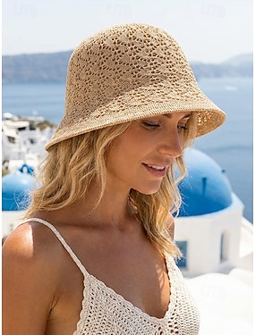 Damen-Hut im Boho-Stil aus gewebtem Polyester, in verschiedenen Farben erhältlich, leichter Sonnenschutz, ideal für Strandurlaub, Freizeit im Freien und als lässiger Alltagsbegleiter