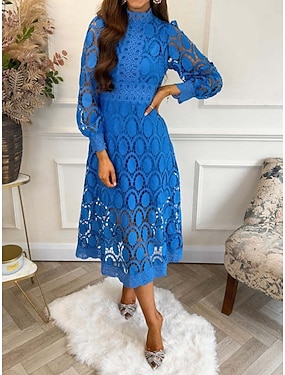 Damen Spitzenkleid Midikleid Spitze Spitze Patchwork Party kleid hochzeitsgast Arbeit Elegant Ausgefallene Rundhalsausschnitt Kurzarm Dunkelblau Farbe