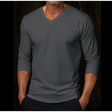 Herren T Shirt Langarm V Ausschnitt Winter Frühling & Herbst Ganzjahres Einfarbig Strickware Täglich Sportbekleidung Rein Lässig Täglich Outdoor Weiß Schwarz Dunkelgrau Top T-Shirt für Herren