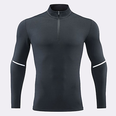 Herren Fitnessstudio-Shirt Kompressions-Shirt Angelhemden Zip Polo Ständer Langarm Sport & Natur Urlaub Ausgehen Casual Schnell Trocknend Hohe Dehnung Atmungsaktiv Weich Glatt Schwarz Weiß
