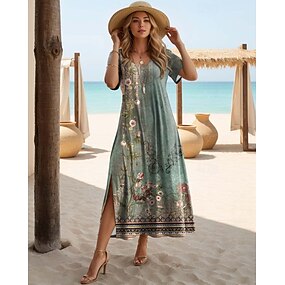 Damen Maxi Kleid Lässiges Kleid T Shirt Kleid Tee Kleid Sommerkleid Hawaiian Date Reguläre Passform Floral Kurzarm Rundhalsausschnitt Schwarz Weiß Lila Orange Sommer
