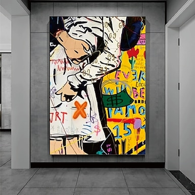 Graffiti-Kunst handgefertigt King of Street Basquia Stil helle Malerei große Graffiti-Stil Wandkunst Pop-Art-Gemälde auf Leinwand Pop-Art-Gemälde Graffiti-Kunstwerk Malerei fertig zum Aufhängen Dekor