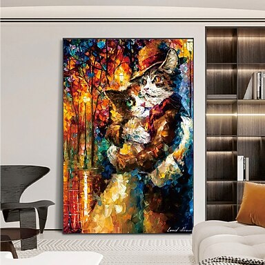 Handgefertigtes handgemaltes Ölgemälde Wand moderne abstrakte Katze Paar Malerei Spachtel Kunst Leinwand Gemälde Heimdekoration Dekor gerollte Leinwand kein Rahmen ungedehnt