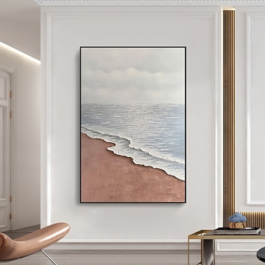 Handgefertigtes, originales, minimalistisches Ozean-Ölgemälde auf Leinwand, Wandkunst, Dekor, blauer Himmel, abstraktes Gemälde für die Inneneinrichtung, mit gespanntem Rahmen/ohne Innenrahmen-Gemälde