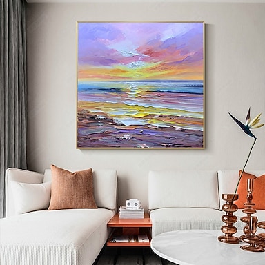Handgefertigtes Ölgemälde auf Leinwand, Wandkunst, Dekoration, moderne abstrakte Meer-Sonnenaufgang-Landschaft für Wohnkultur, gerolltes, rahmenloses, ungedehntes Gemälde
