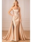 Meerjungfrauenschnitt Abendkleid Elegant Formelle Kleidung Formell Hochzeit Bodenlange Schleppe Ärmellos Ein-Schulter Satin mit Gerafft Rüschen 2025