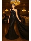 A-Linie Schwarzes Abendkleid Vintage Kleid Formell Hochzeitsgast Bahn Langärmel Ein Schulter Satin mit Feder Schlitz