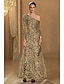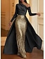 Schlauchkleid Abendkleid Elegant Formelle Kleidung Formell Hochzeit Bodenlang Langarm Ein-Schulter Paillettenbesetzt mit Glitzer Stickerei Schal 2025