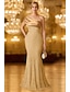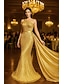 goldenes Meerjungfrau-/Trompeten-Abendkleid, elegantes Abendkleid, formelle Hochzeit, bodenlang, kurze Ärmel, eine Schulter, Stretch-Satin mit gerüschtem Paillettenschlitz, 2025