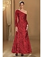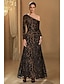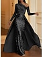 Schlauchkleid Abendkleid Elegant Formelle Kleidung Formell Hochzeit Bodenlang Langarm Ein-Schulter Paillettenbesetzt mit Glitzer 2025