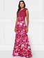 Jumpsuit  Hosenanzug Brautmutter Blumenmuster Elegant Einfach Minimalistisch Ein Schulter Bodenlang Satin Ärmellos mit Sash  Band Hochzeitsgastkleid