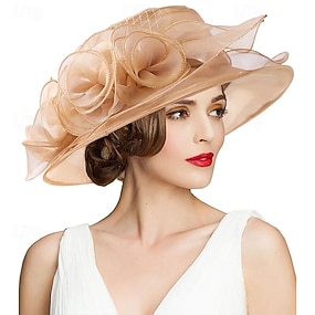 Hüte Organza Kentucky Derby Kirche Einfach Boho Mit Spitze Blume Kopfschmuck Kopfbedeckung